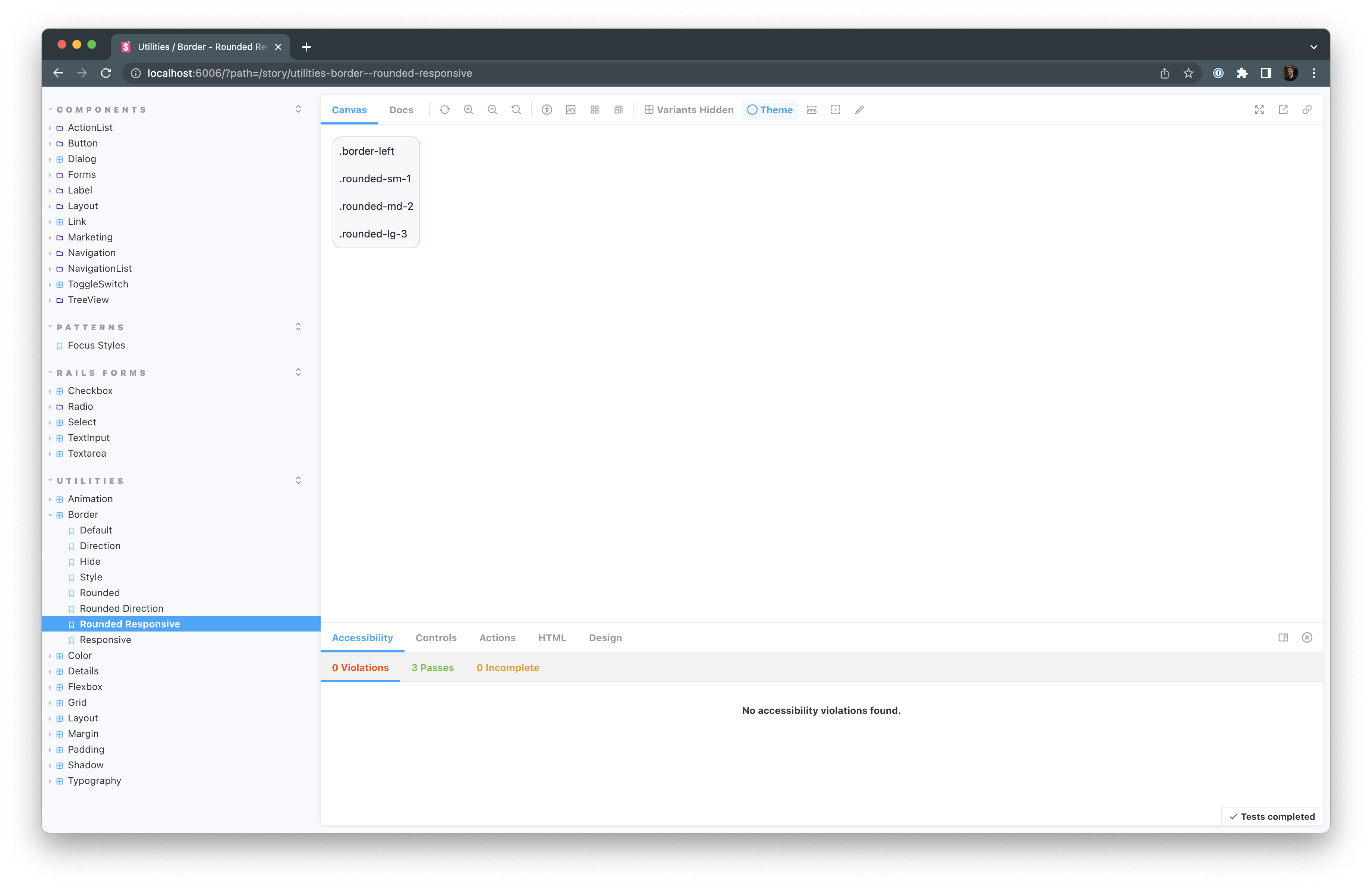The responsive rounded examples in the storybook.